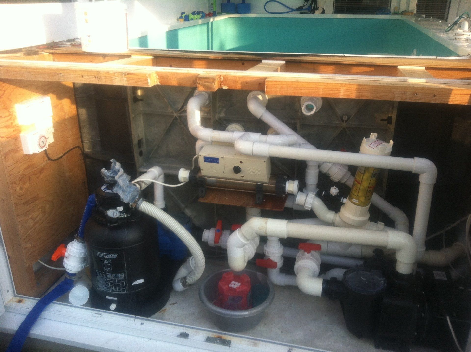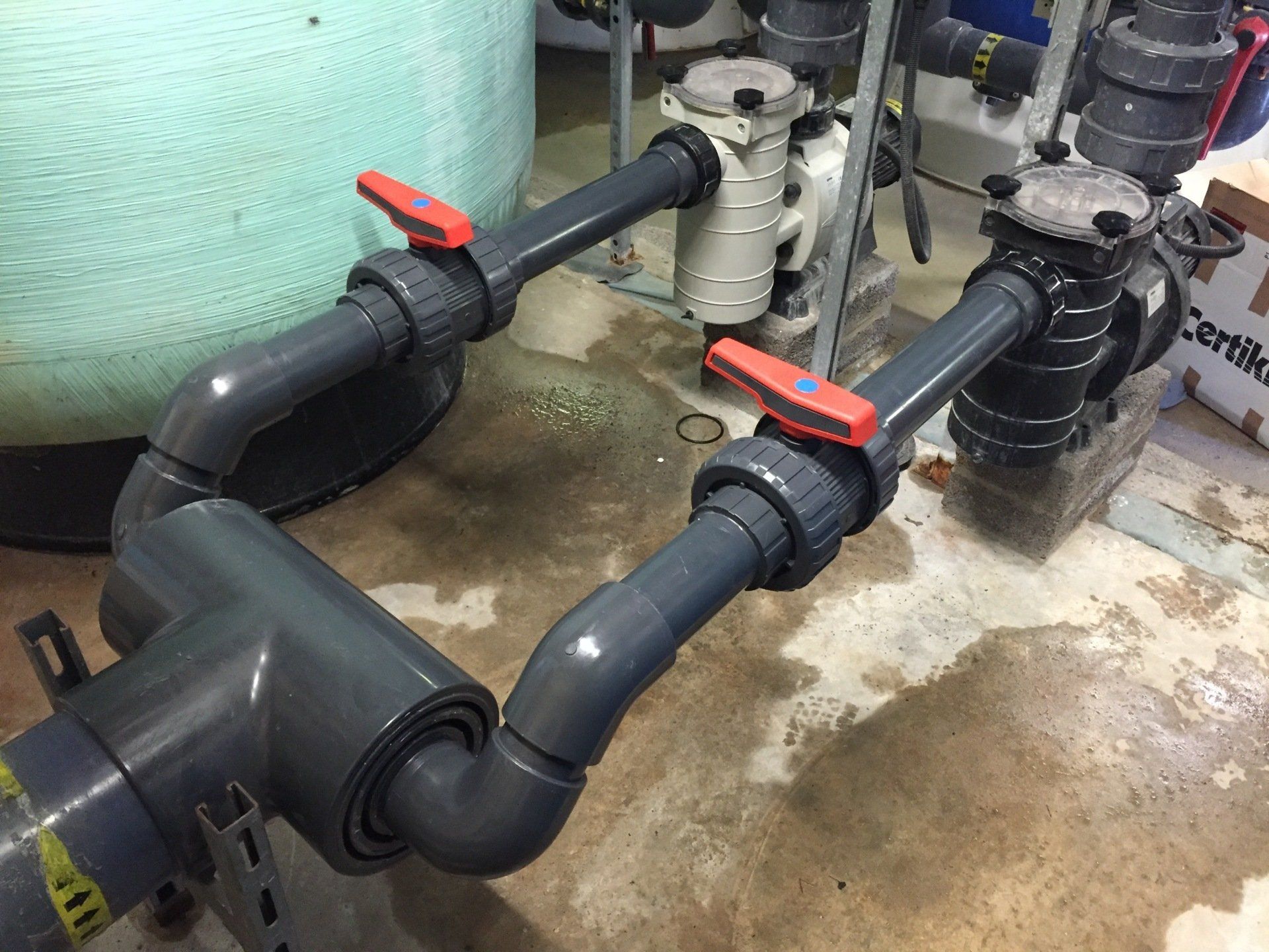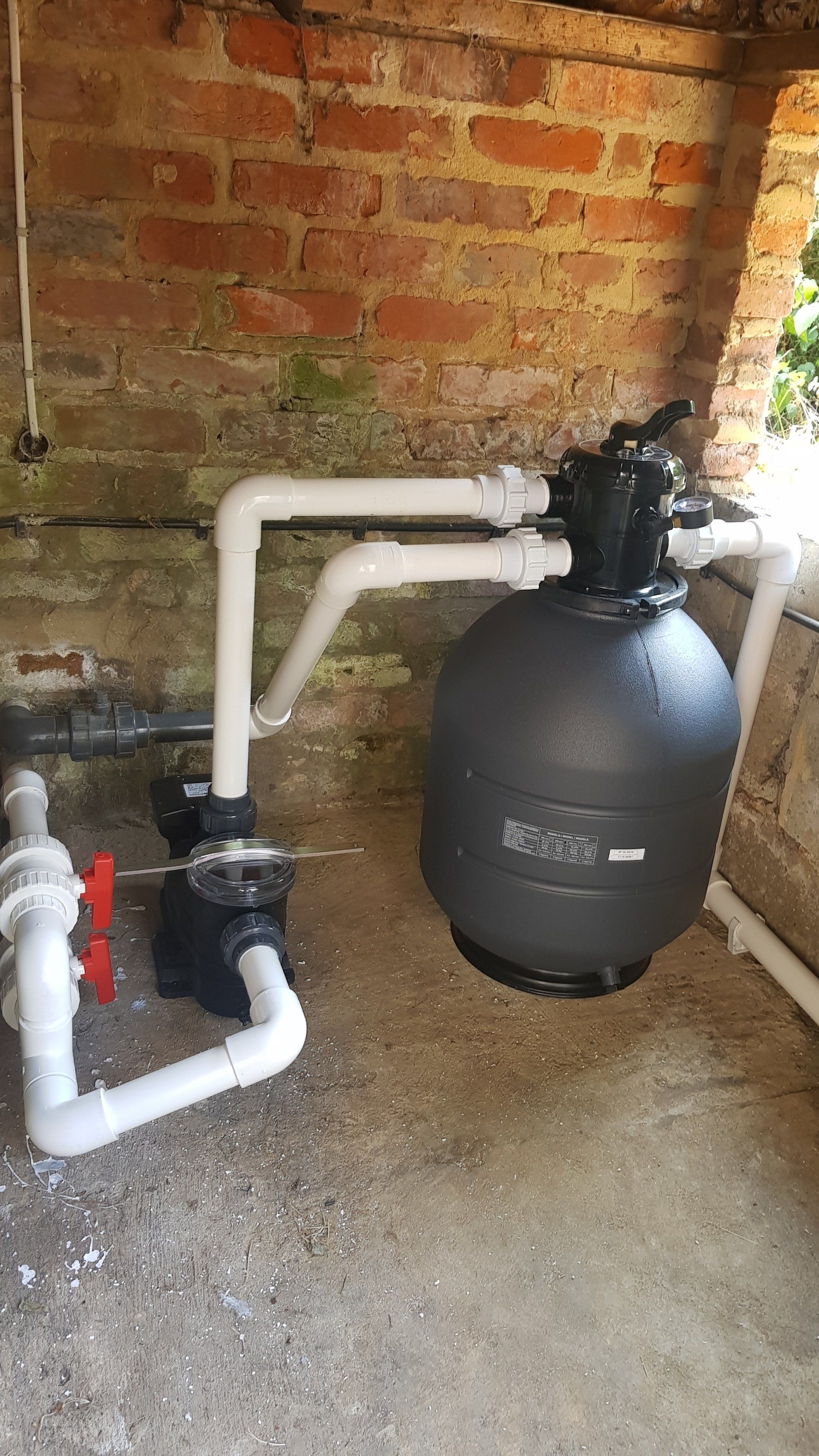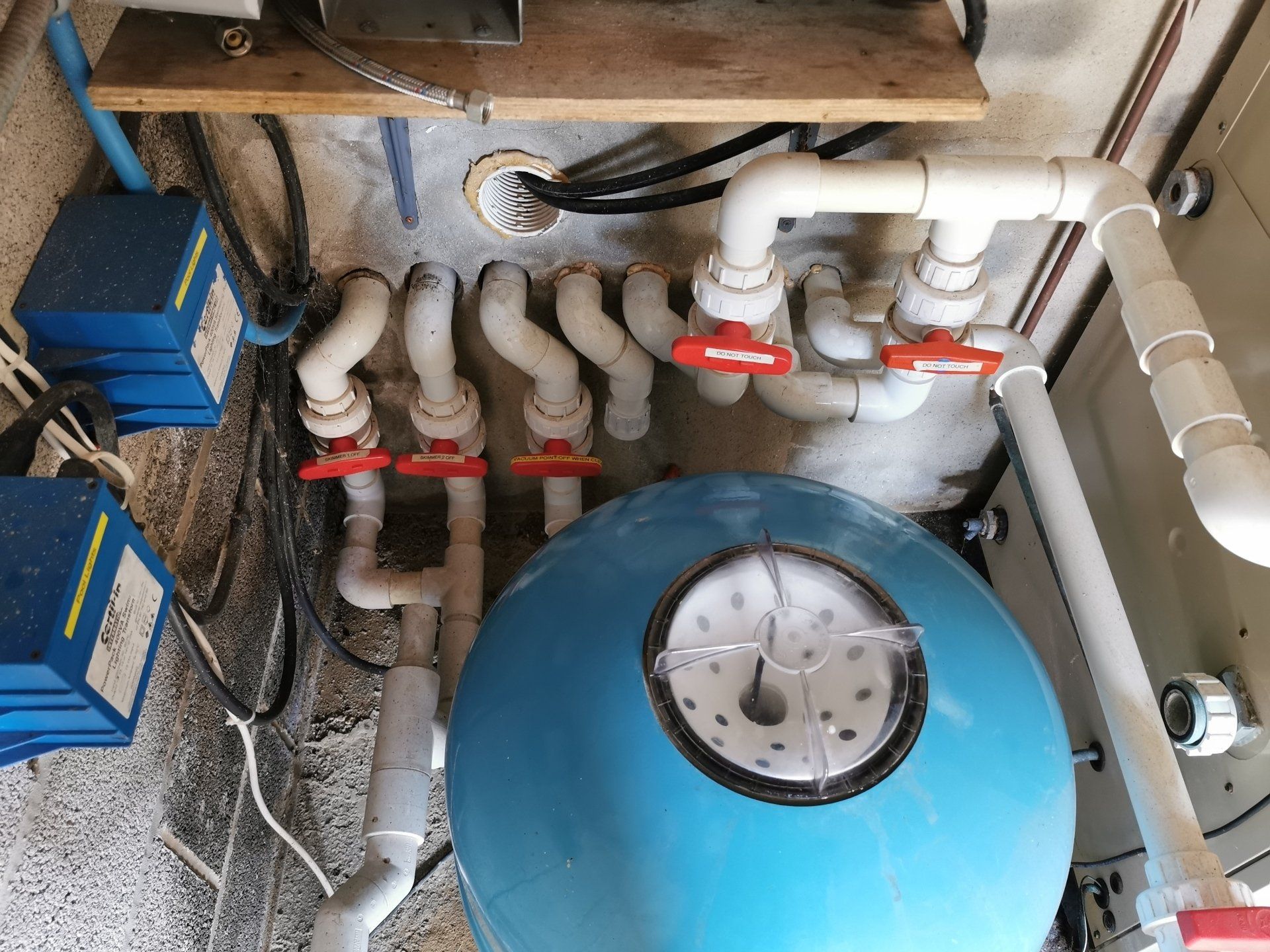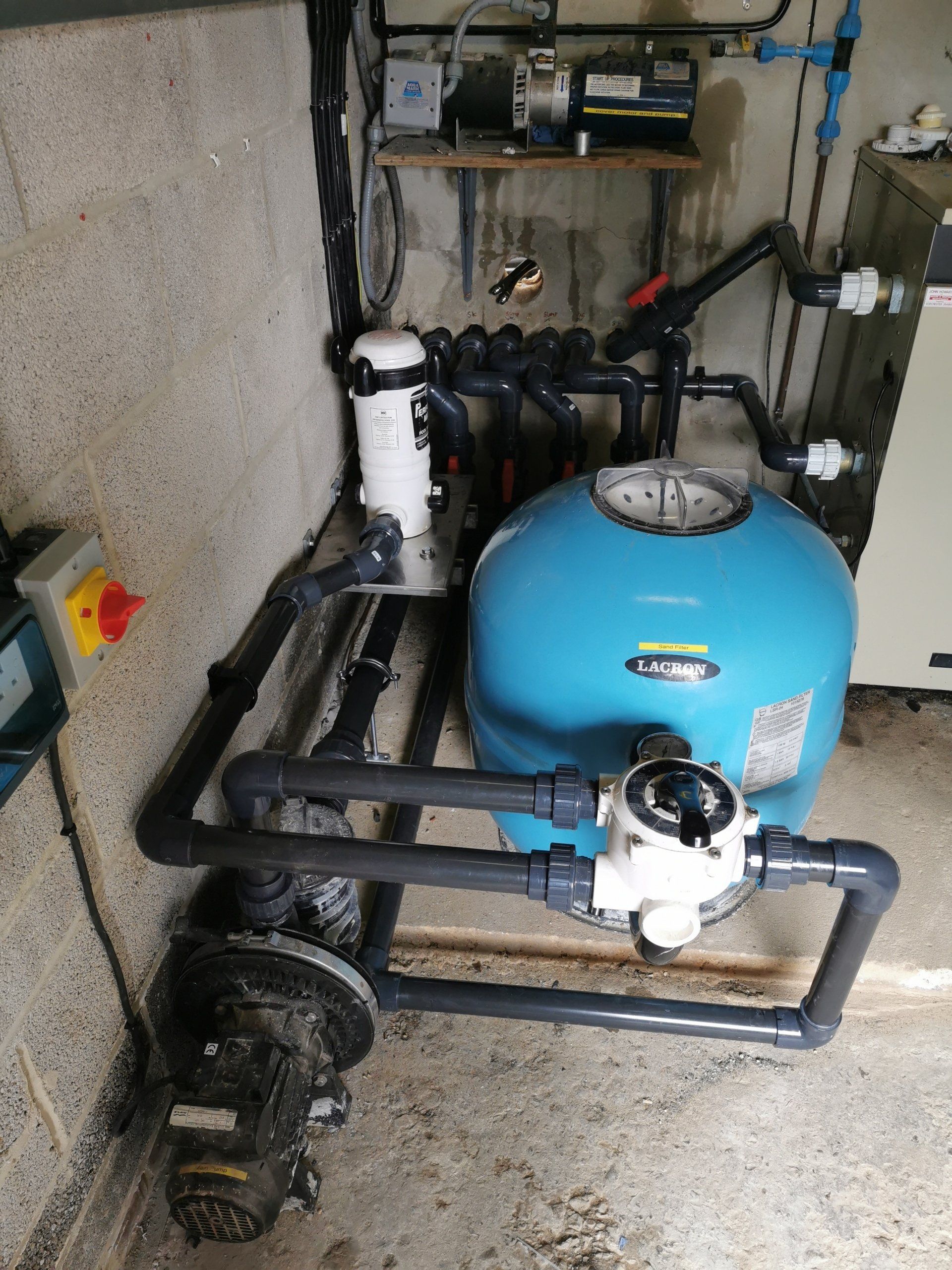 ButtonPlantroom for a custom built pool - new pipework and new filter. Domestic pool.