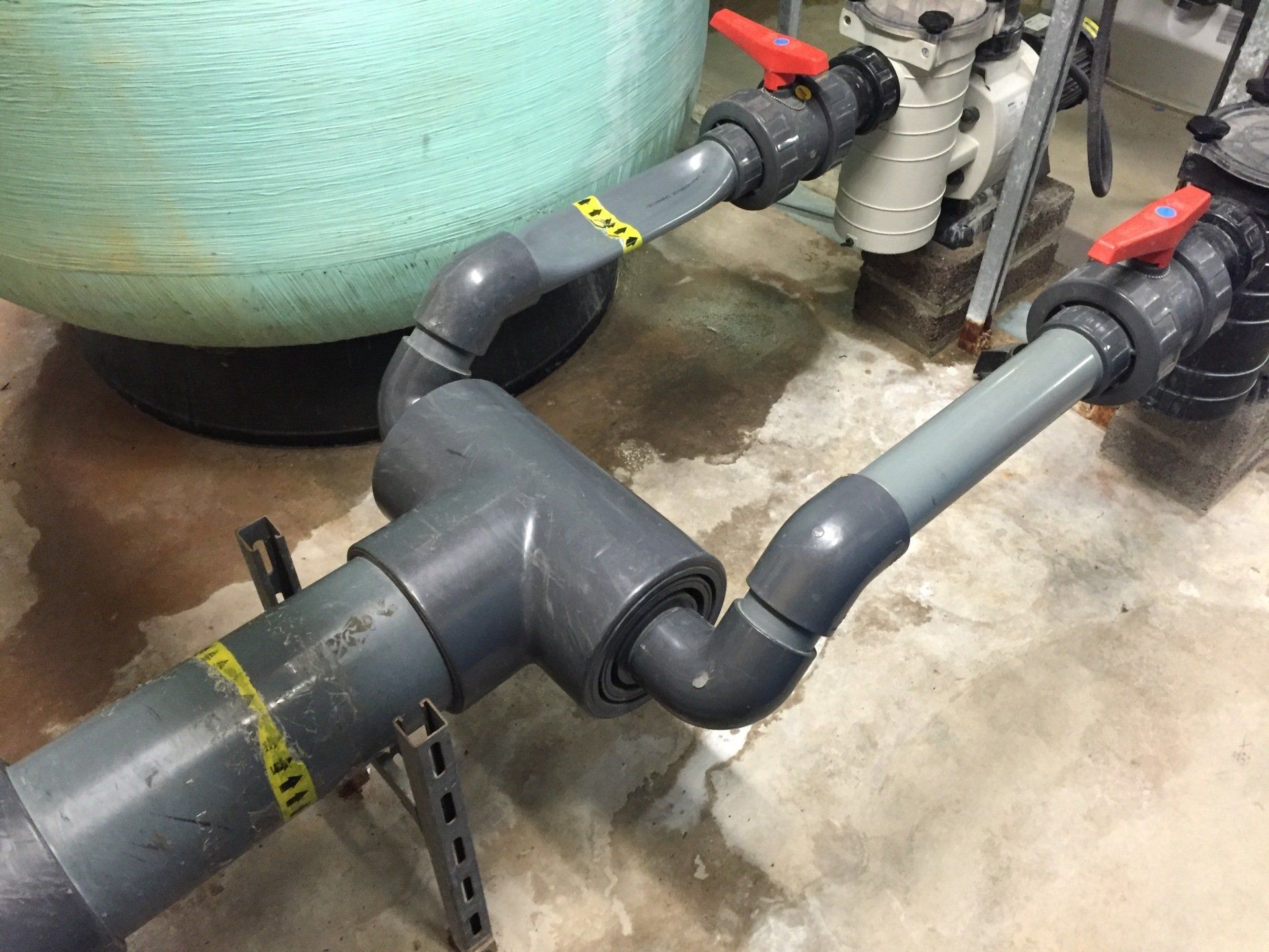 ButtonNew suction pipework after old pipework melted. Commercial pool.