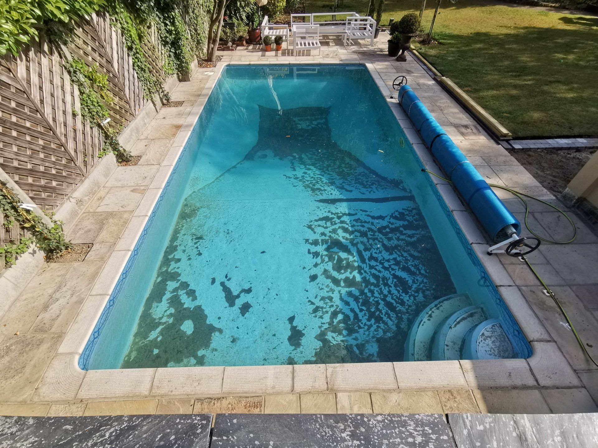 ButtonCalcium build up in the pool. Pool emptied, acid washed, cleaned and refilled. Domestic pool