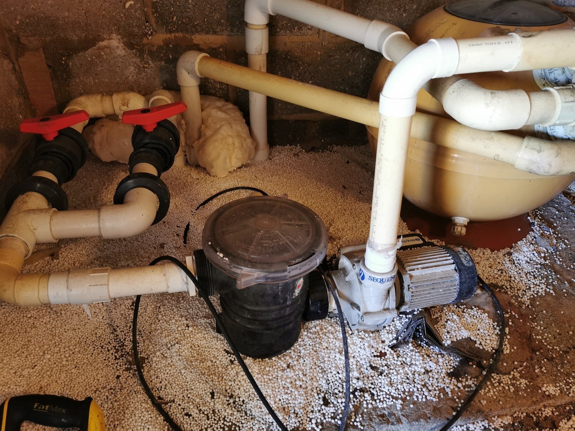 ButtonPlantroom - ripped out and rebuilt. New pump, new filter, new pipework and new electrics. Domestic pool.